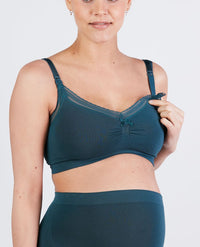 La brassière d'allaitement Milk sans couture est munie de clips d'allaitement traditionnels et d'une dentelle élastique pour un accès simple et rapide à votre poitrine.
