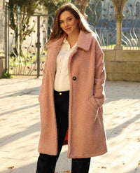 Léonie est le manteau long de grossesse oversize qu’il vous faut pour affronter les journées froides d’hiver. Que ce soit par dessus un jean ou une belle robe, il sera la pièce maîtresse de votre tenue. Son extérieur bouclette et son intérieur doublé polaire vous apporteront douceur et confort, tout en vous tenant chaud.