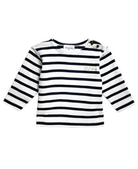 La marinière bébé Morgat blanc et marine est un indispensable du dressing de votre petit matelot. Relativement chaud, le tee-shirt rayé à manches longues est parfait pour la mi-saison.