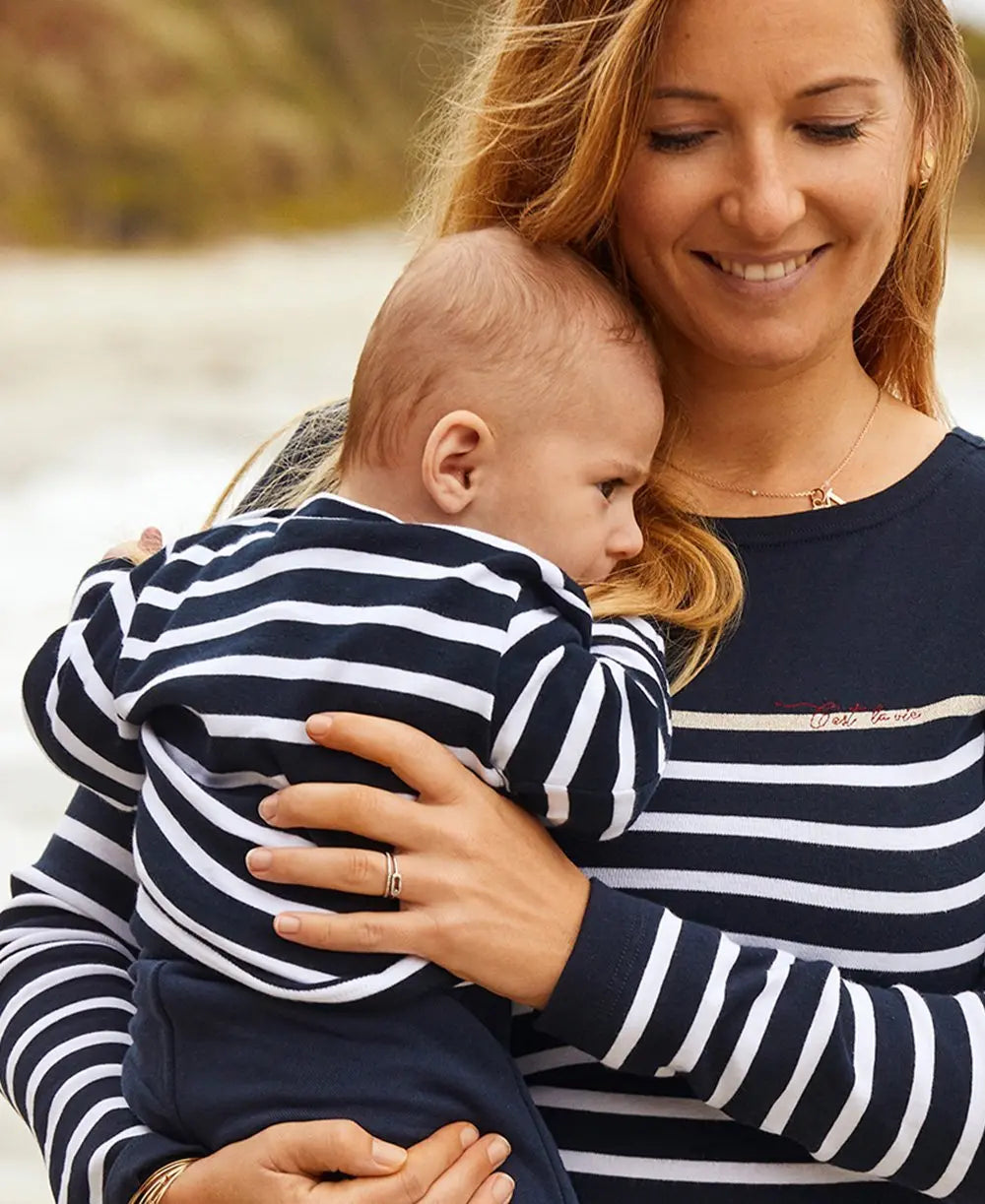 Assortissez la marinière de votre bébé à la vôtre et adoptez un family look emblématique. Ultra douce et facile à enfiler, c’est LA pièce iconique du dressing de votre petit moussaillon.