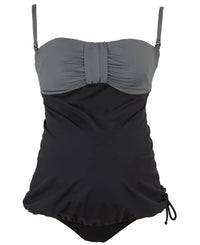 Confectionné à partir d'une magnifique microfibre italienne effet satiné, ce tankini de grossesse est d'une douceur absolue. Avec son coloris clair sur le décolleté bandeau et foncé sur le bas, ce tankini de grossesse bicolore est un assortiment parfait de teintes délicates.