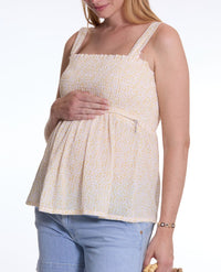 Le top de maternité Ambre, c’est la pièce parfaite pour une sensation de douceur et de légèreté. Confectionné en crêpe de coton, il offre un confort absolu tout en apportant une touche délicate avec son motif de mini fleurs. Pensé pour suivre l’évolution de votre silhouette, son haut smocké épouse naturellement la poitrine et le dos, assurant un maintien parfait sans comprimer, quand sa coupe évasée permet de le porter tout au long de la grossesse et après.