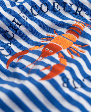 Inspiré des îles et marinières bretonnes, Belle Ile vous séduira pour son motif bleu et blanc et ses jolis détails orange. Sa broderie homard ajoutant une touche d’originalité bretonne à la combinaison.