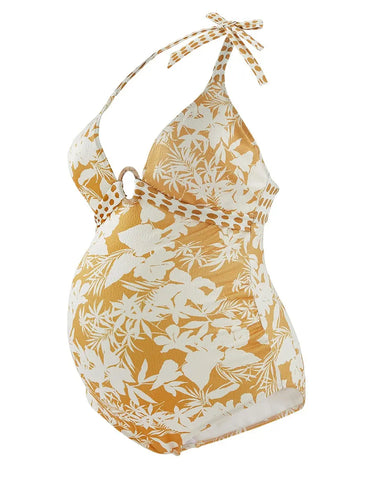 Le maillot de bain de maternité Antigua se pare d'un imprimé florale et de pois au niveau des laçages pour éblouir les futures mamans !