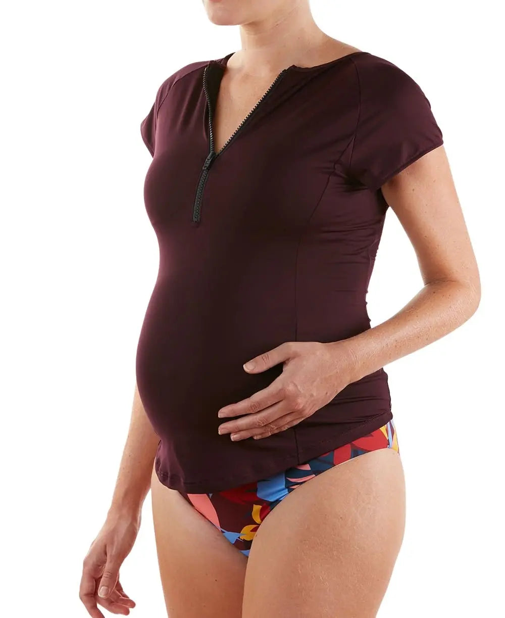 Envie de changer de look ? La culotte est réversible, à vous de choisir selon vos envies. Notre tankini de maternité Malibu existe également en version maillot de bain.