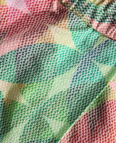 - Matière jacquard colorée : un tissu raffiné avec des motifs de rosaces, pour un look chic et éclatant.