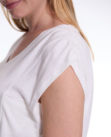 Le t-shirt de grossesse et d'allaitement Lucile est l’allié parfait des mamans actives qui cherchent confort et fonctionnalité sans compromis. Avec son col en V et sa matière légère en coton et lin, il est aussi agréable à porter qu’à utiliser au quotidien. Idéal pour allaiter en toute discrétion grâce à un système d’accès pratique et bien pensé.