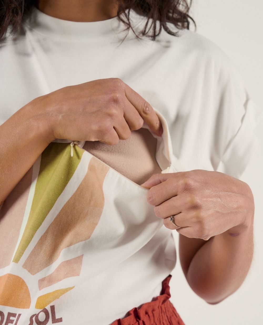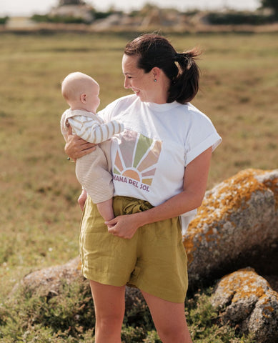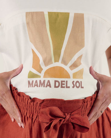Affirmez votre style avec le T-Shirt d'allaitement Mama Del Sol Blanc, une pièce graphique qui célèbre la maternité avec modernité et élégance.