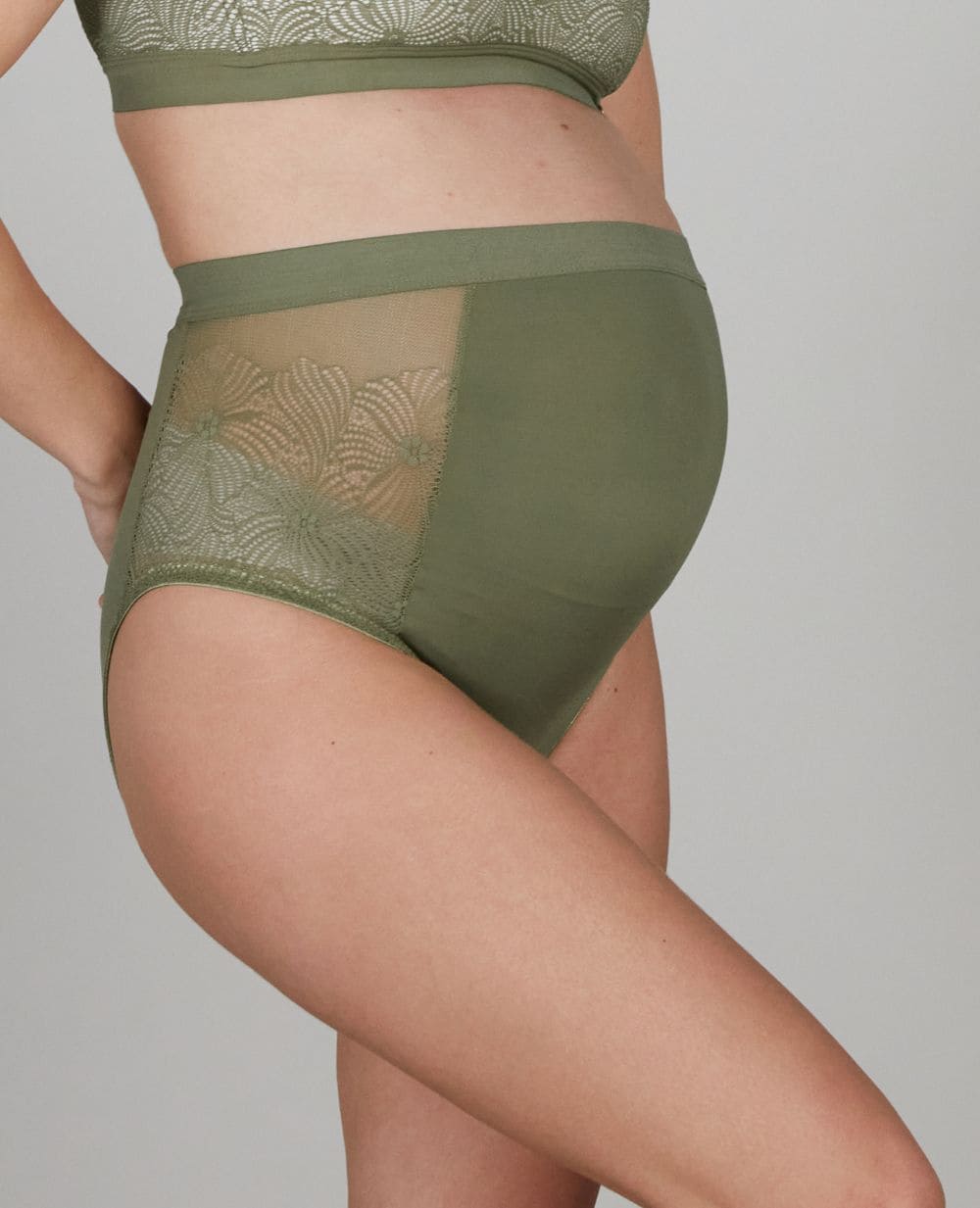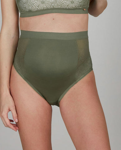 La maxi culotte de grossesse Dahlia kaki vous accompagnera tout au long de votre grossesse et même après avec élégance et confort. Taille haute, elle s’adapte avec douceur aux évolutions de votre corps grâce à son élastique et sa matière extensible.