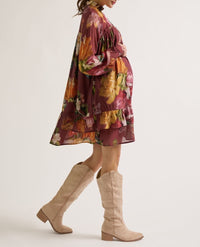 La robe de grossesse et allaitement Élisabeth Multicolore allie douceur et caractère grâce à son imprimé fleuri et sa coupe babydoll.