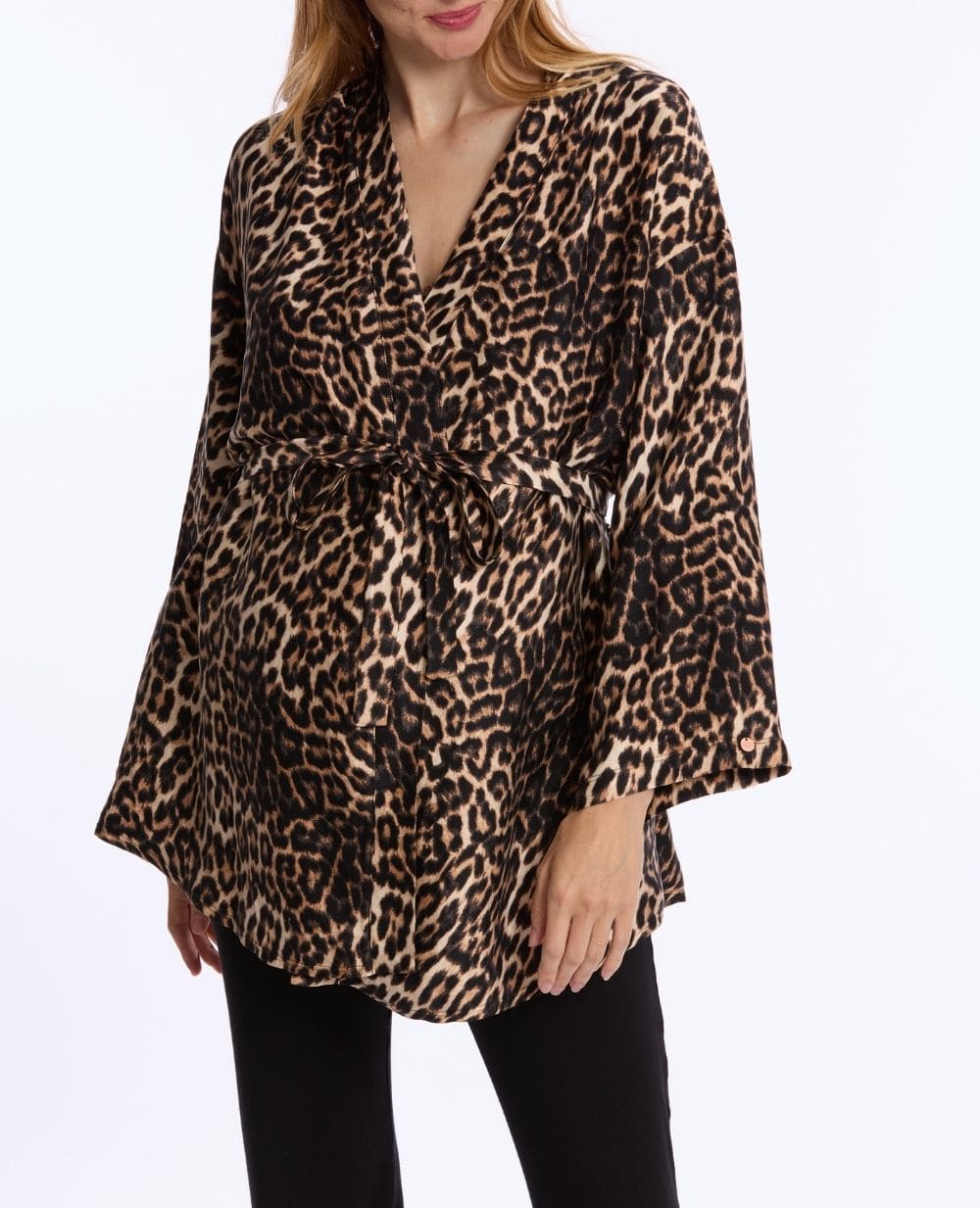 Craquez pour le léopard avec la ligne Roxane : un kimono de grossesse ultra-soyeux et fluide avec sa matière en Cupro et Viscose EcoVero. Roxane vous accompagnera tout au long de votre grossesse, de l’allaitement et longtemps après. Un véritable cocon de douceur !
