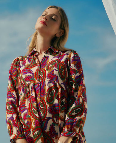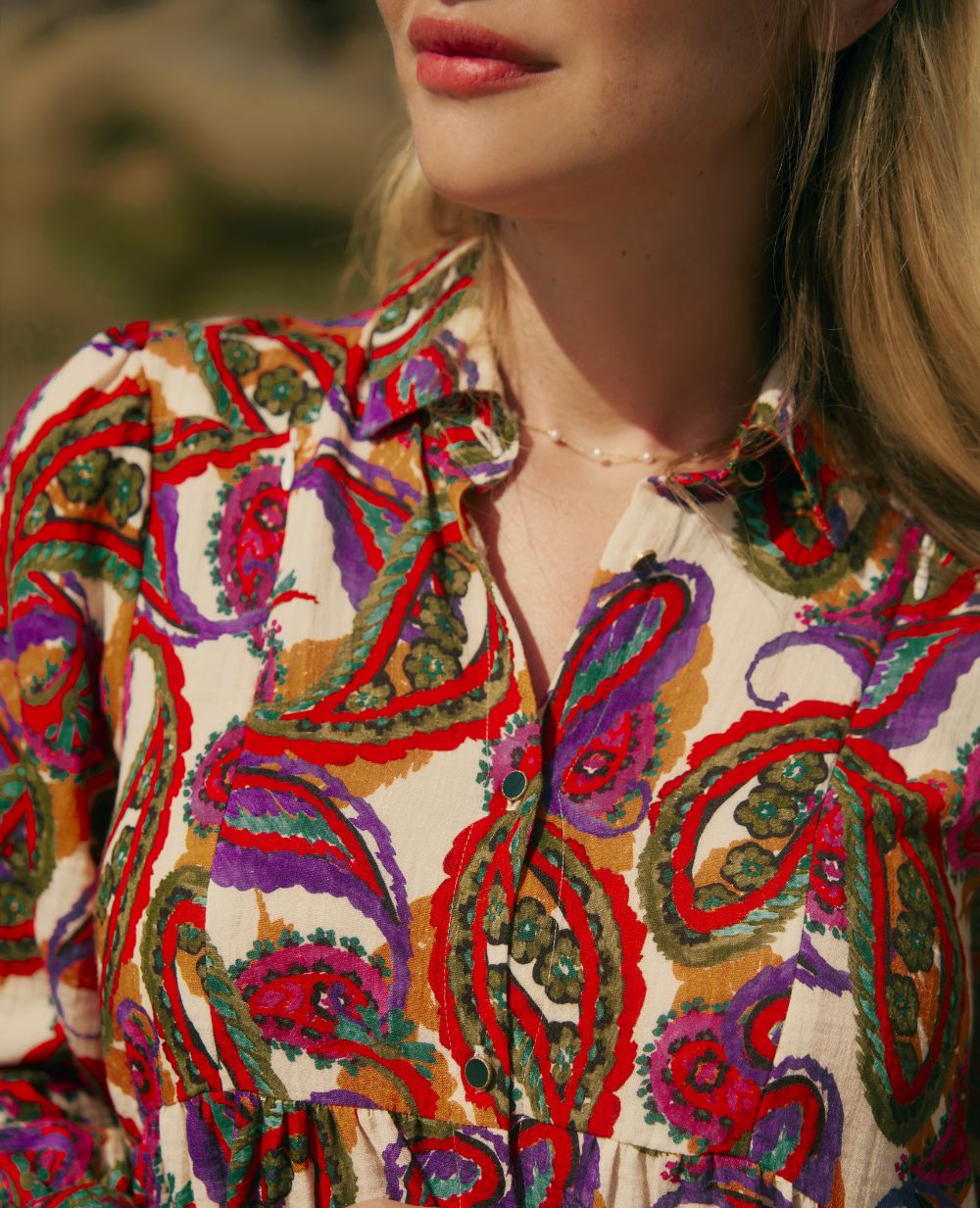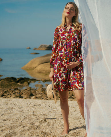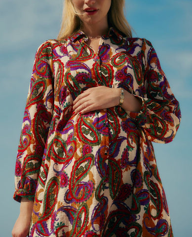 Robe de grossesse et allaitement Soledad : la robe chemisier colorée