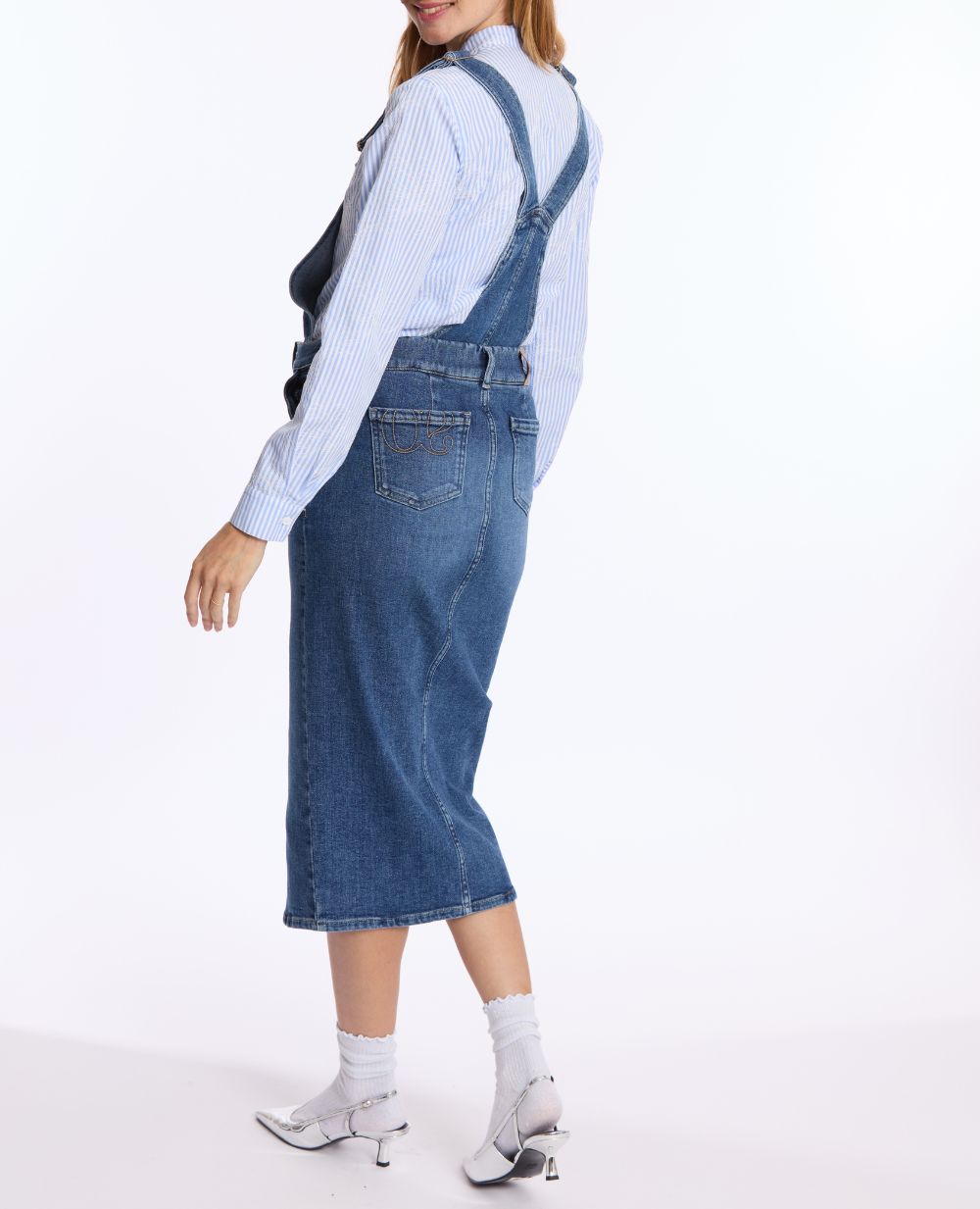 Want to change your style? Thanks to its snap system, you can transform your overalls into a pencil skirt that you can pair with the removable Belt band to cover your belly and relieve your back.