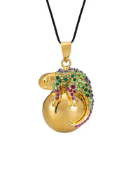 The Cameleon pregnancy bola is adorned with fine gold Swarovski crystals, combining elegance and originality.