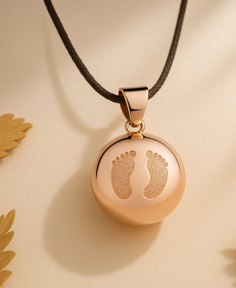 The BABYFEET pregnancy bola drilled with fine pink gold is decorated with small feet of babies in relief. Elegant, modern and feminine, pink gold will enhance your shapes and outfits!
