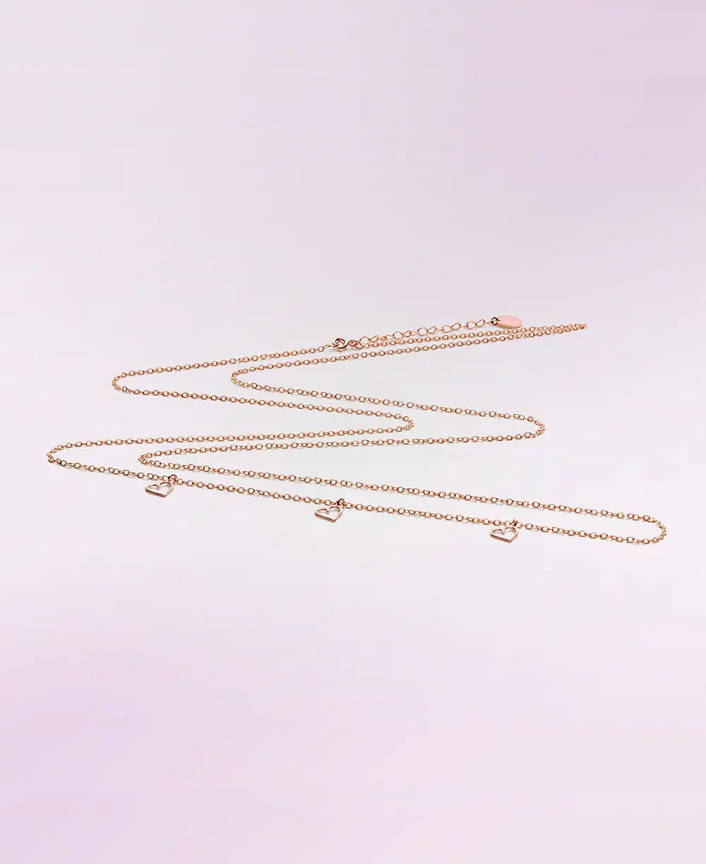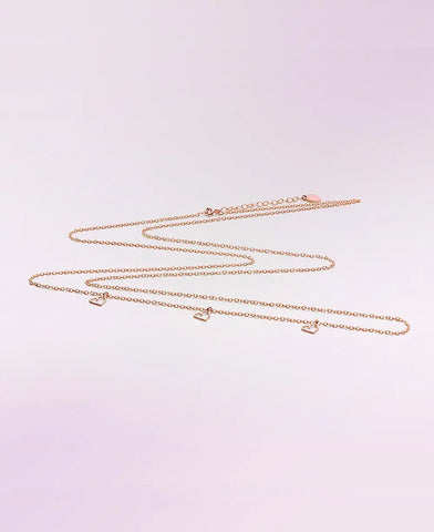 Golden brass chain with rose gold is to be combined with a pregnancy bola to have a personalized jewel that looks like you.This chain has three small hearts on one side. It is 110cm long and adjustable by 10cm.