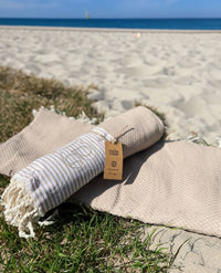 The beige cotton fouta is the essential accessory that will accompany you all summer during your swimming sessions. With its absorbency and lightness, it transforms into an ideal beach towel, perfect for your days by the sea or at the pool.
