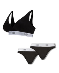 Discover the Life maternity pack, made up of 2 panties and 1 black bra, the main thing for your comfort during and after pregnancy. The pants, in Tencel, offer you a incomparable sweetness and an relaxed sensation All day long. Thanks to its antibacterial and anti -producer properties, Tencel lets your skin breathe, thus ensuring a Optimal comfort. Their stylized elastic, made from recycled fibers, guarantees perfect support without any constraint.