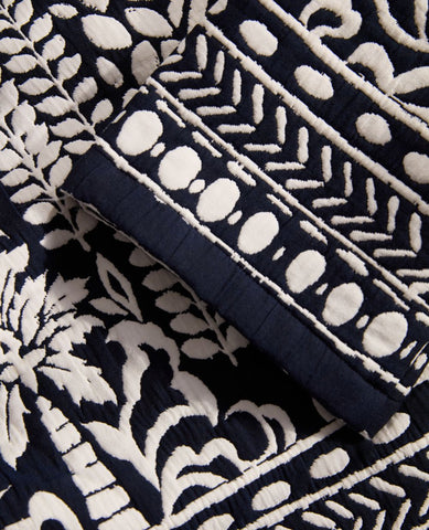 - French jacquard fabric: a chic and timeless navy blue and white pattern.