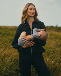 The Pablo maternity and nursing jumpsuit made from interlock knit fabric is an absolute pleasure to wear. Its knitted fabric provides flexibility, elasticity, and durability, ensuring it does not lose its shape.