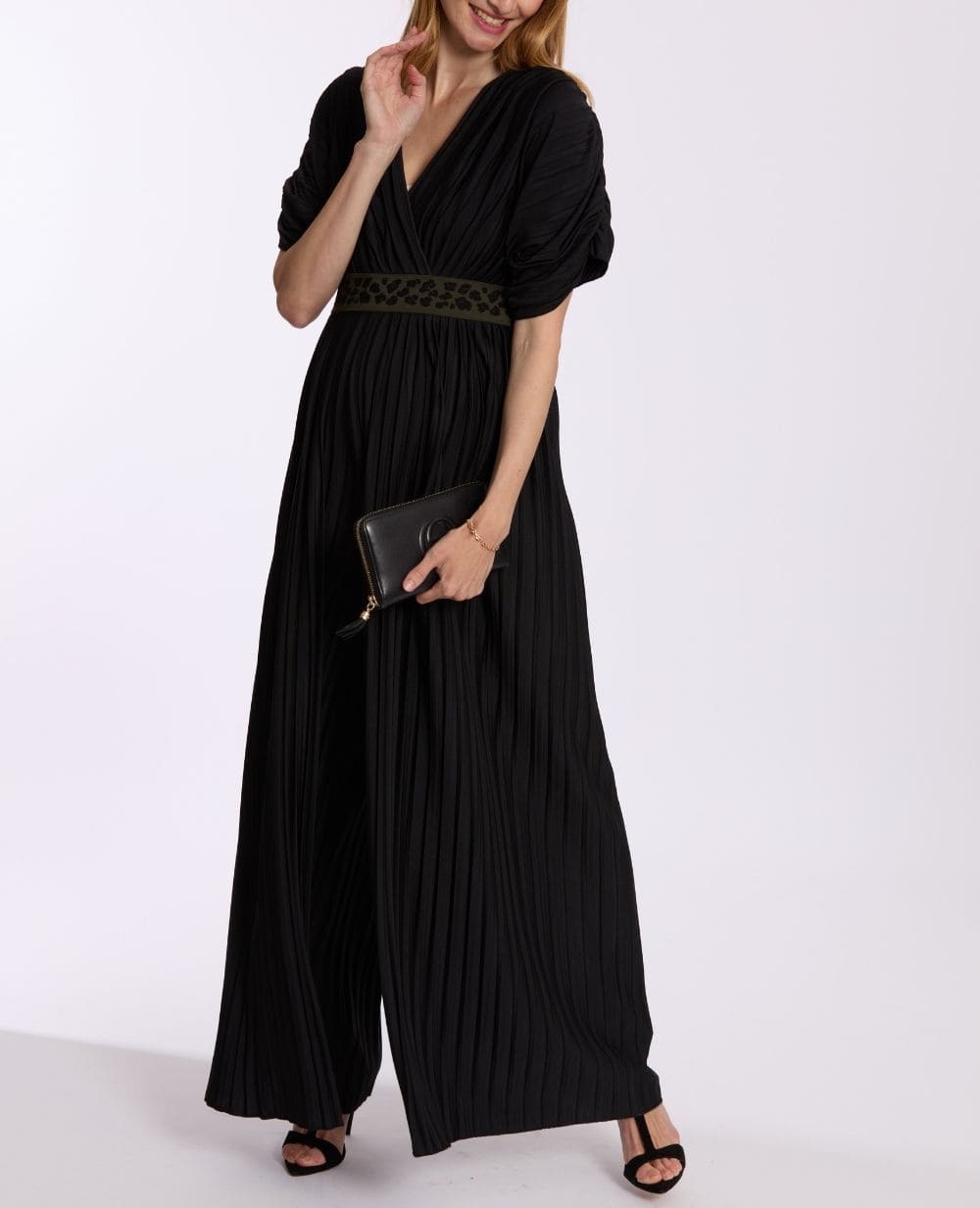 Naomi is the must-have maternity jumpsuit. A stylish piece, perfect for pregnancy, breastfeeding, and long after! With its pleats and a touch of leopard print on the khaki belt, it will be with you for every occasion, whether casual or more festive.