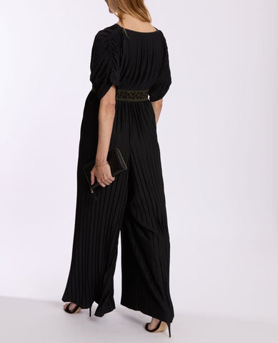 With its pleats and leopard-print khaki belt, it’s a decidedly trendy outfit. Pair the jumpsuit with heels for a dressed-up look or with a nice pair of sneakers for a more casual style.