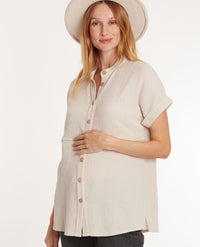 The buttons on this blouse are made of French olive wood. Its embroidery at the chest level and its mandarin collar bring modernity and refinement. Finally, its short rolled-up sleeves are ideal for sunny days. Complete it with a nice pair of jeans and a jacket to create your perfect maternity look!
