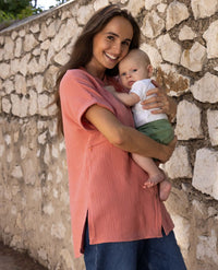 The Valentine blouse has a tailored fit to accompany you throughout your pregnancy and easily breastfeed. Made of organic cotton gauze, it has been designed to provide you with a feeling of softness and lightness.