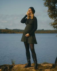 The Charlotte maternity pinafore dress is both elegant and practical, offering comfort throughout pregnancy, nursing, and long after! Crafted from quilted jacquard in a chic khaki color, you’ll love wearing it at every stage.
