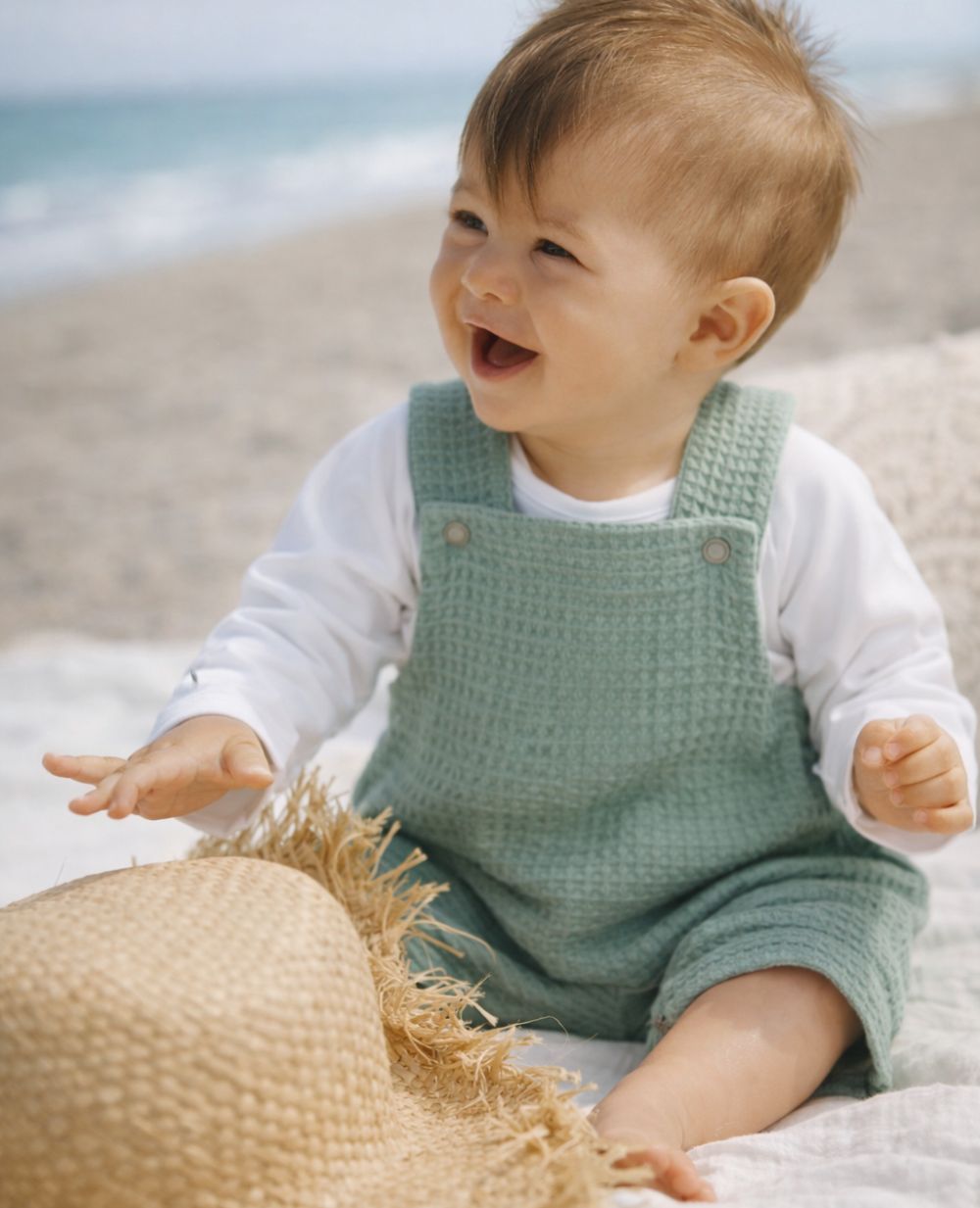 - Materiale nido d'ape 100% cotone biologico : piacevole da indossare e rispettoso della pelle sensibile del bambino