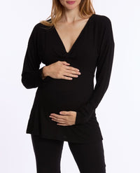 La maglietta a maniche lunghe per maternità Louna è realizzata in viscosa di bambù, un materiale leggero e molto morbido. Ti piacerà per il suo scollo a V con effetto twist e le maniche lunghe. Un capo grazioso e confortevole per la notte e la casa.