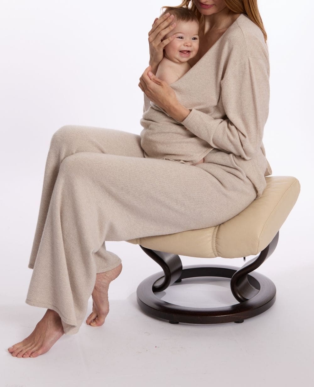Hills è un pantalone per maternità in lana e cashmere con un taglio ampio, progettato per offrire un comfort eccezionale durante tutta la gravidanza e oltre. Il suo taglio ampio assicura una totale libertà di movimento e un comfort ottimale, adattandosi armoniosamente alla tua silhouette di futura mamma.