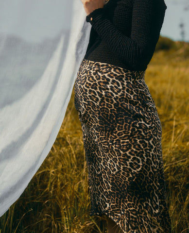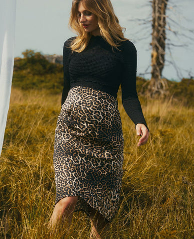Con il suo stampa leopardata di tendenza, questa gonna diventerà presto il pezzo forte del tuo guardaroba. Il suo drappeggio valorizzerà la tua silhouette di futura mamma, rendendo questo capo un must-have da indossare durante tutta la gravidanza e a lungo dopo.