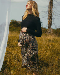 Soccombi alla stampa leopardata con la gonna premaman Léa. Con il suo taglio a portafoglio drappeggiato, valorizzerà perfettamente la tua silhouette di futura mamma.