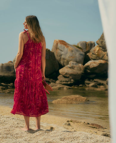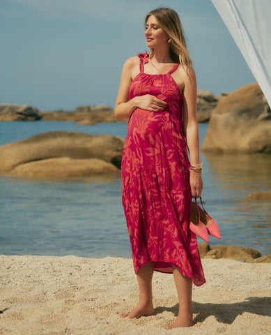Innamoratevi della vestito da maternità Nagoya, un capo lungo, leggero e colorato, con un motivo di alghe giapponesi. Elegante e pratico, vi accompagna durante la gravidanza e l'allattamento con le sue cerniere discrete. Un vero cocoon di morbidezza in mussola di viscosa EcoVero.
