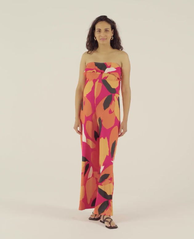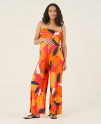Eleganza e praticità si uniscono nella Tuta premaman Irma Passion, un capo a fascia con volant che rivisita lo stile pantalone in chiave moderna.
