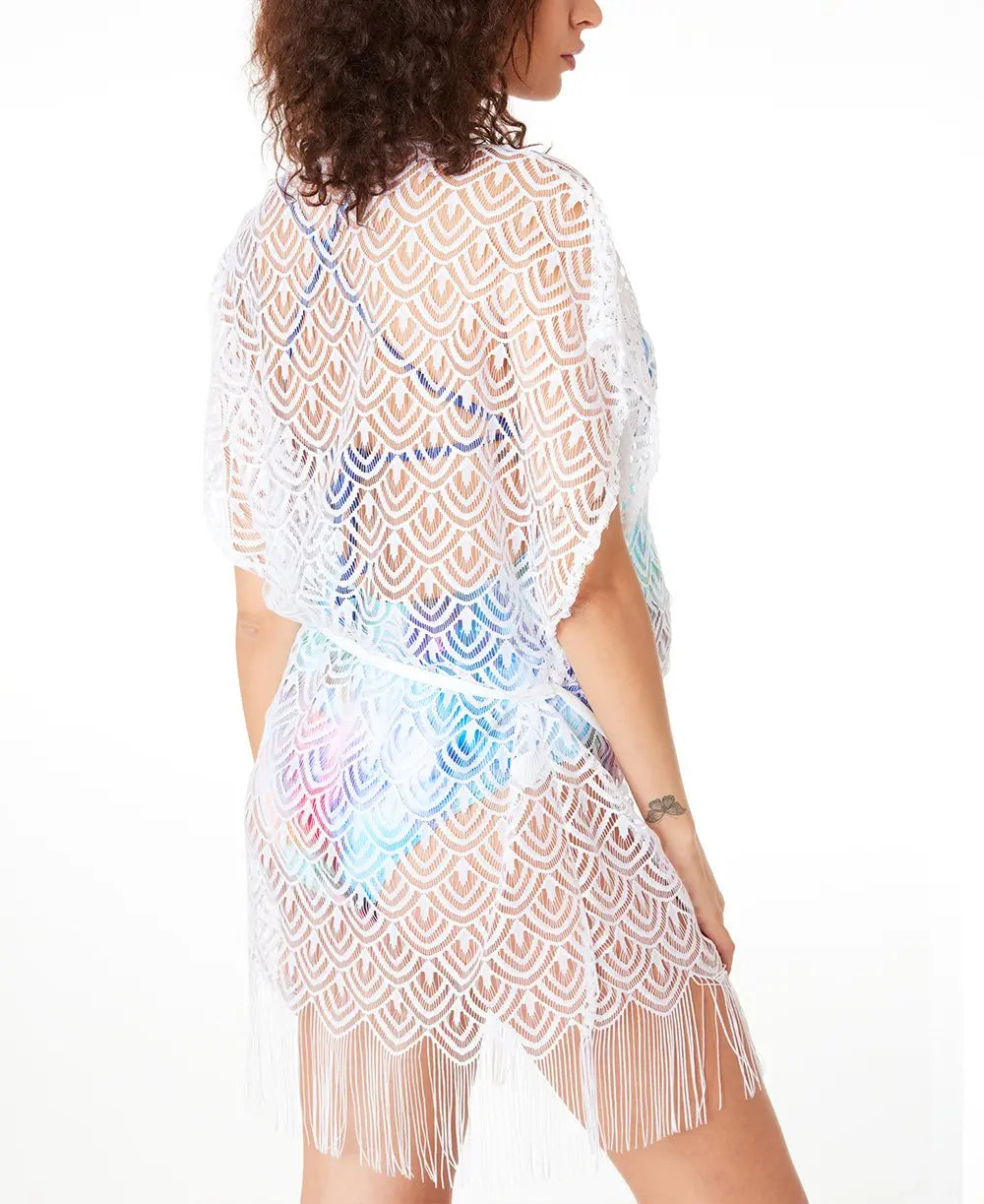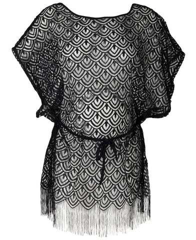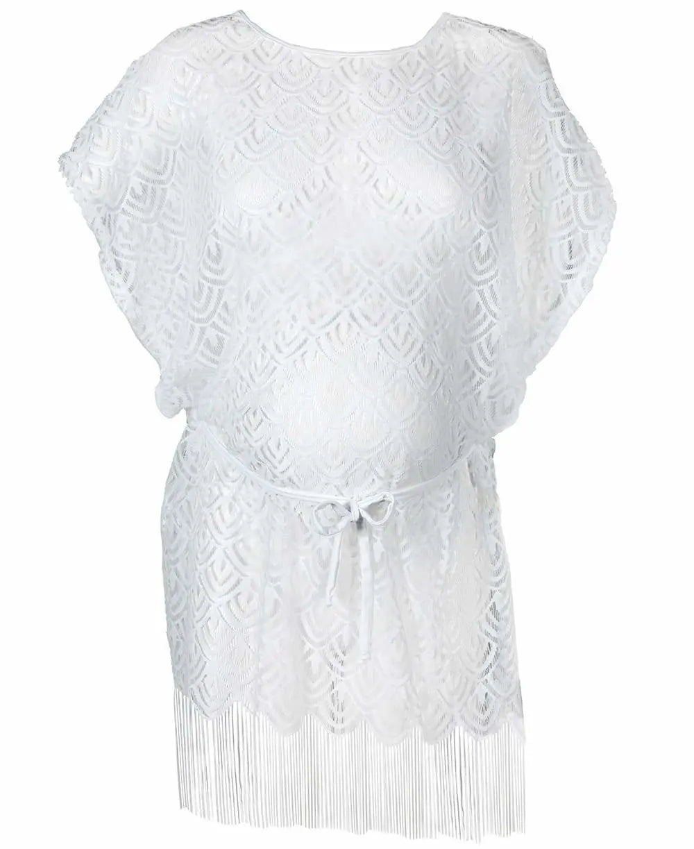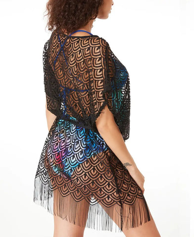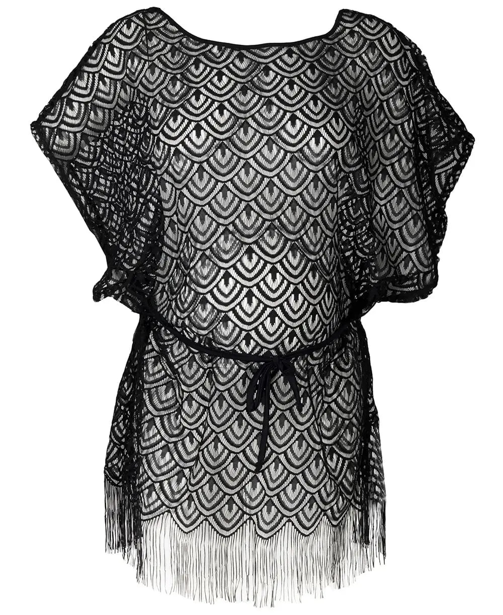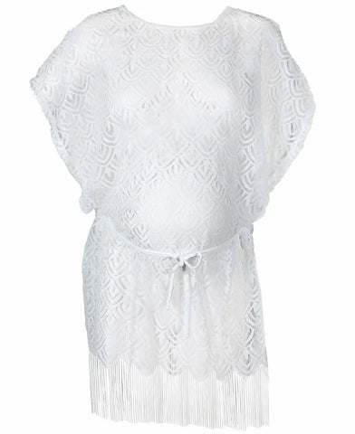 Interamente in pizzo, decorato con frange e motivi etnici, questo caftano diventa un pezzo sofisticato del suo guardaroba estivo!