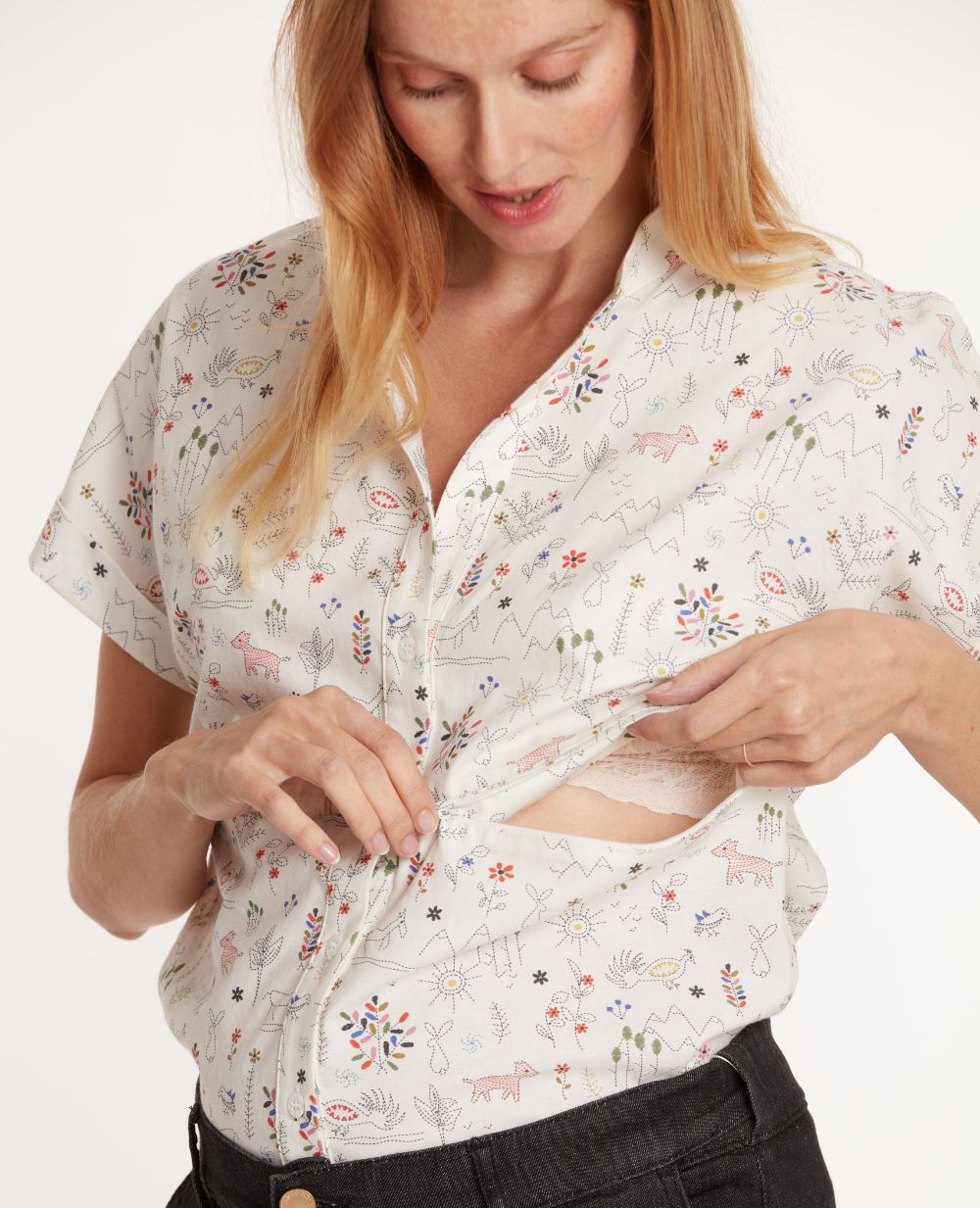 La blusa Valentine per la gravidanza e l'allattamento in garza di cotone biologico è ideale per l'estate e non solo.