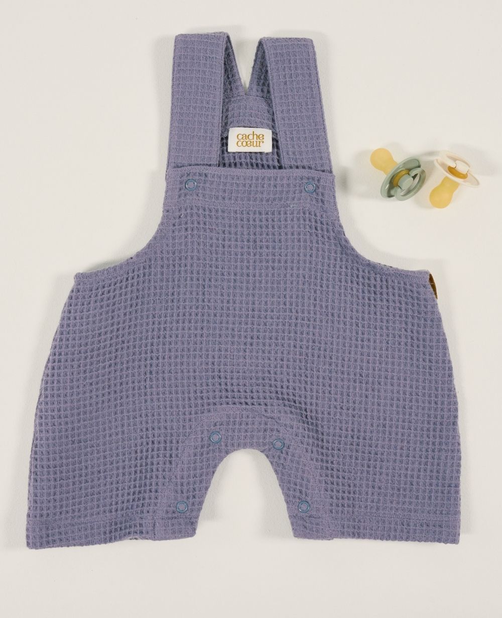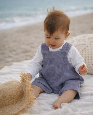 La combinaison bébé nid d'abeille Mini Maya Bleu allie douceur et praticité grâce à son coton 100% biologique et ses boutons-pressions.