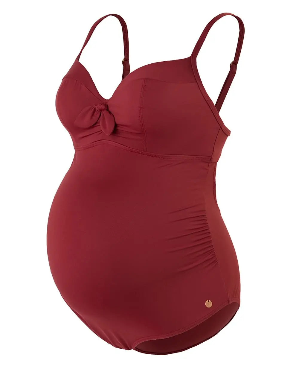 Son nœud papillon en polyamide souligné de fronces dans le décolleté ajoute une touche de séduction tandis que les détails dorés sur les bretelles font de ce maillot de bain de grossesse élégant et tendance un véritable bijou.
